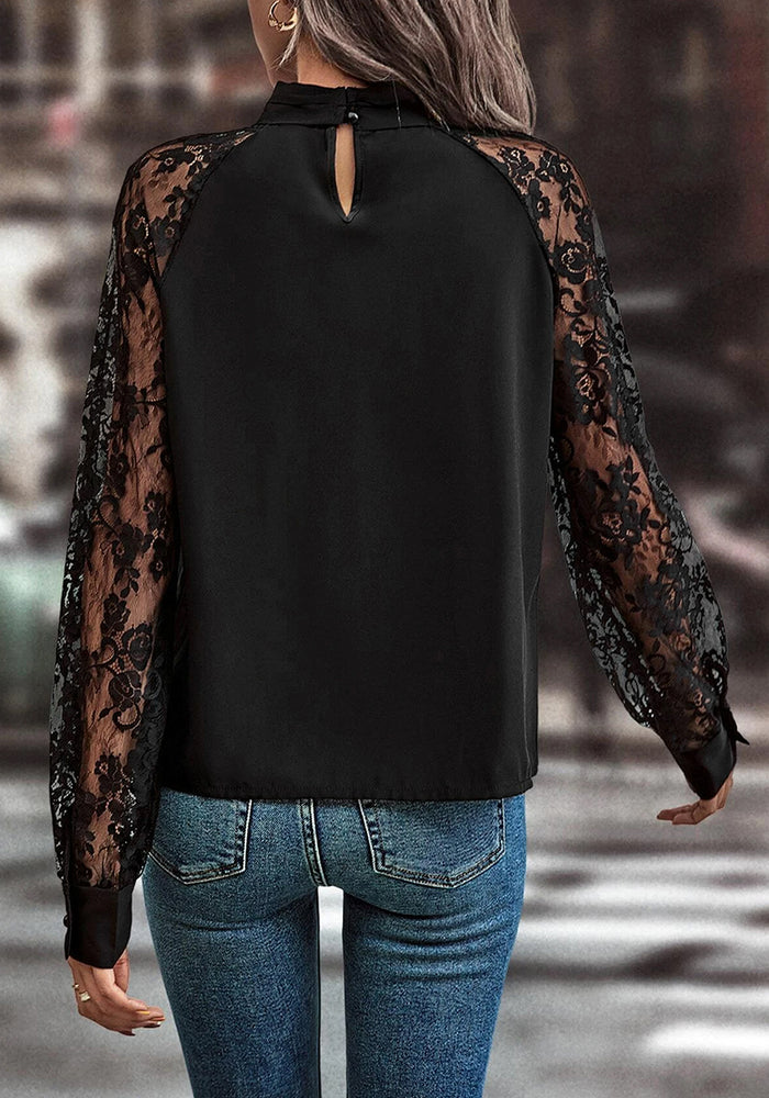 Black Keyhole Neckline Floral Lace Raglan Sleeve Blouse