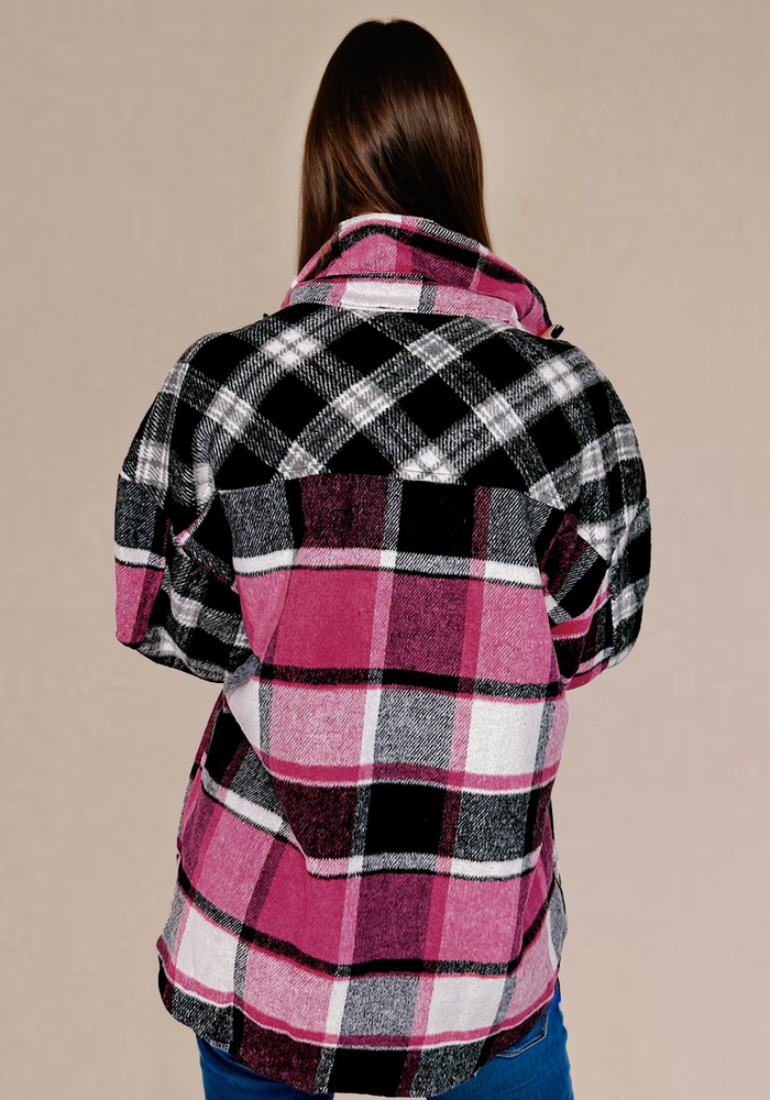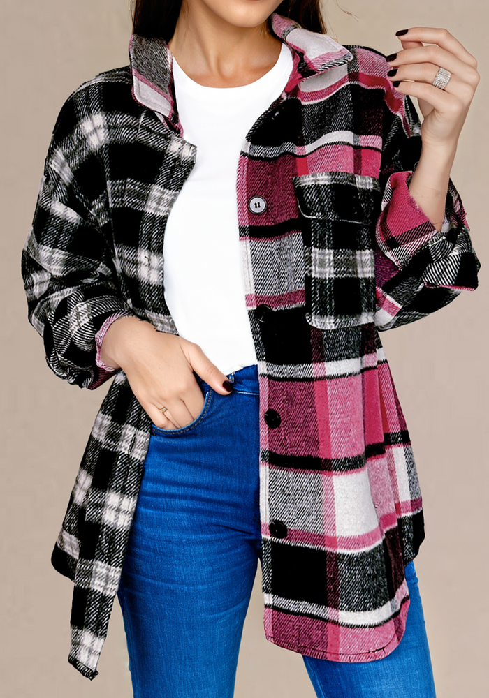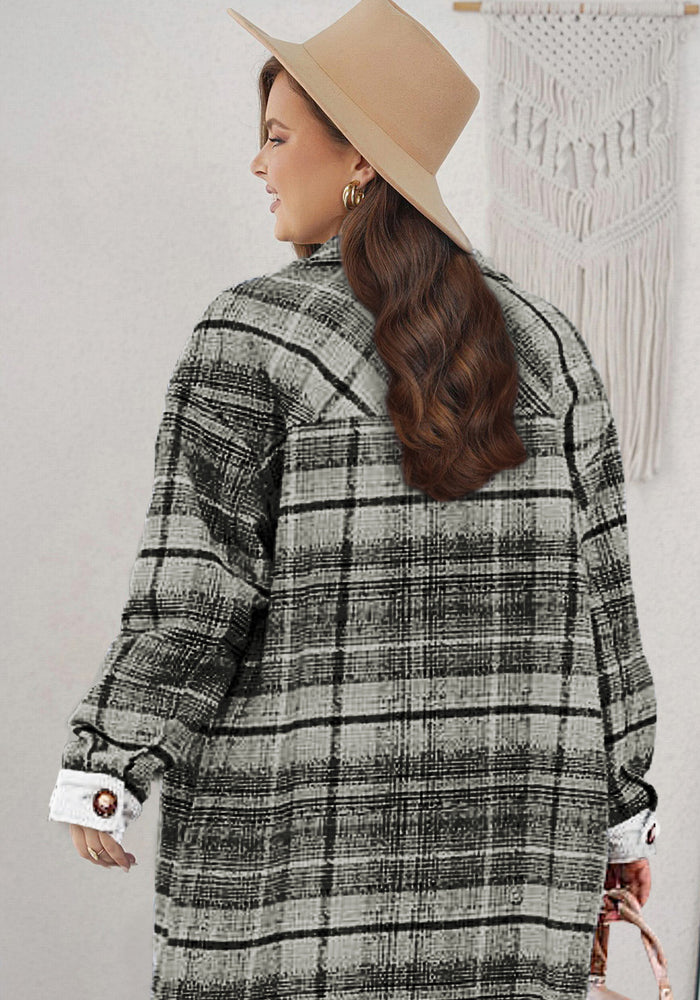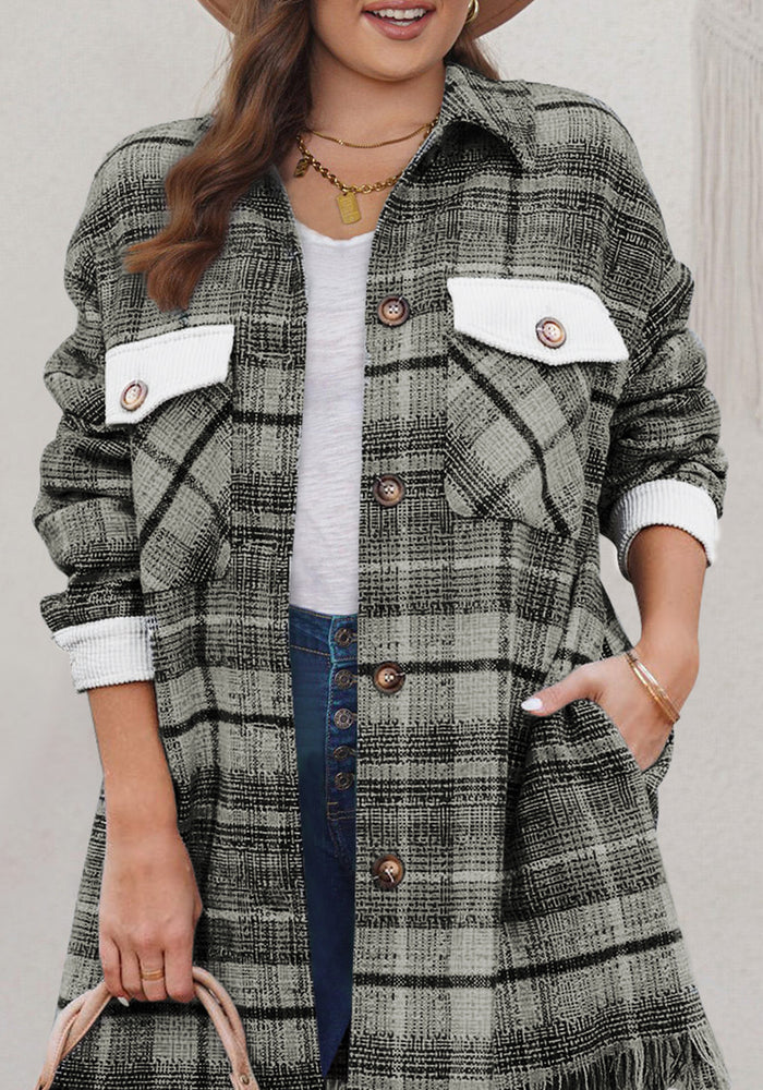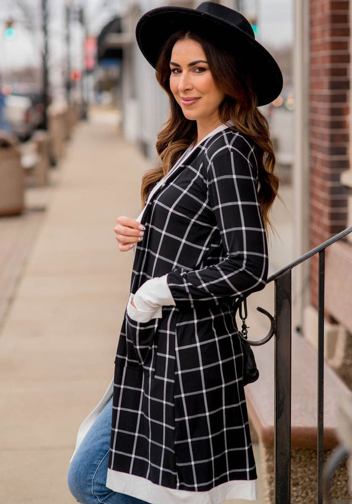 Black Plaid Colorblock Edge Open Cardigan with Pocket