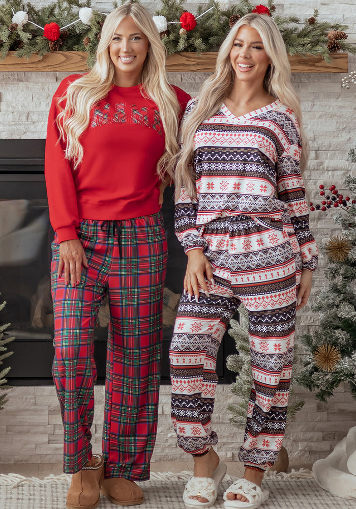 Black Retro Christmas Pattern Loose Pullover 2pcs Lounge Pant Set