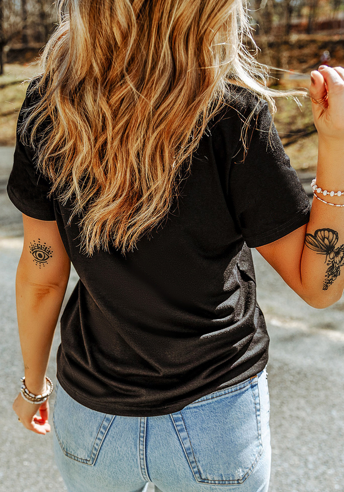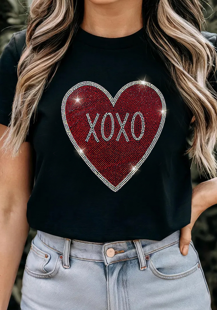 Black Rhinestone XOXO Heart Graphic Crewneck Tee