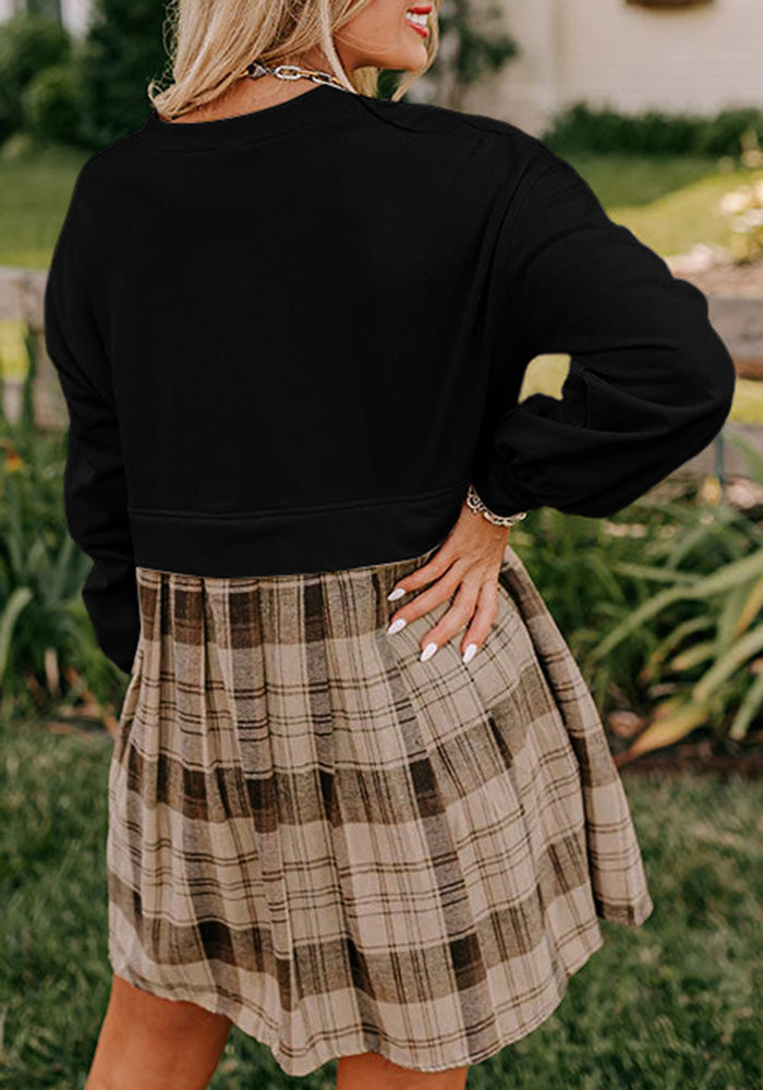 Black Plaid Patchwork High Waist Sweatshirt Mini Dress