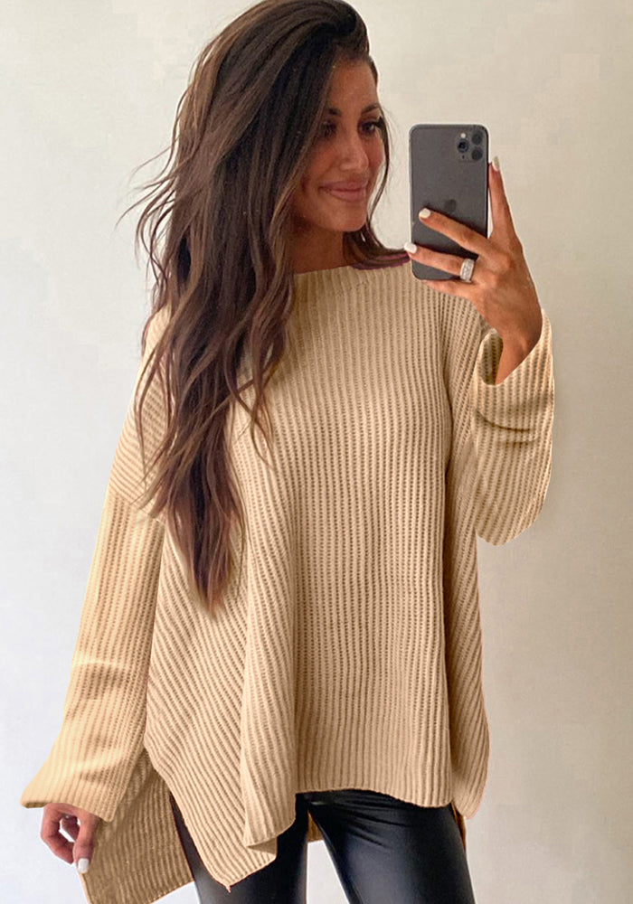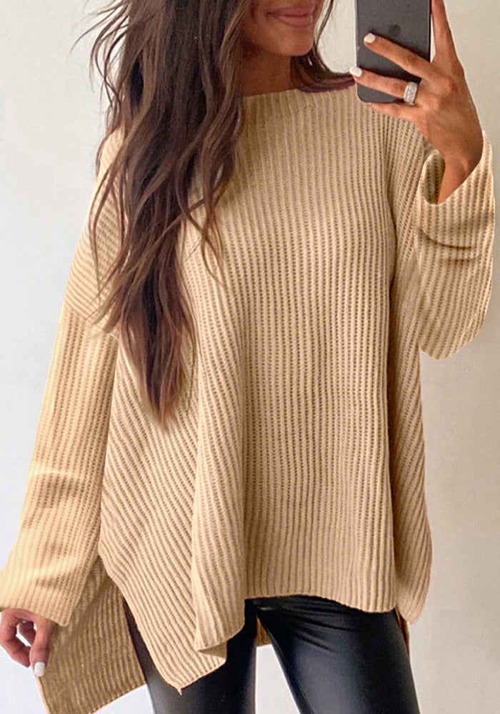 Apricot Cable Knit Drop Shoulder Side Slits Loose Sweater