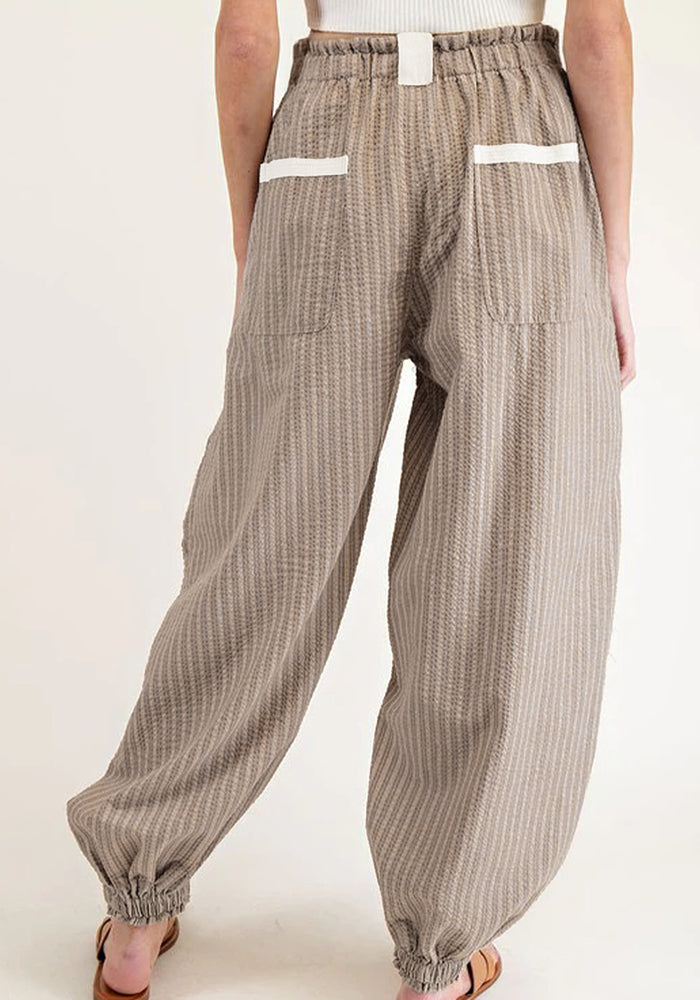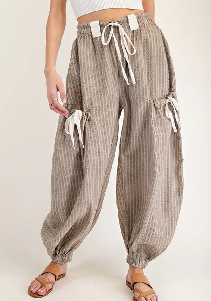 Brown Stripe Drawstring Cargo Jogger Pants with Pockets