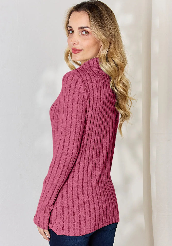Basic Bae Full Size Ribbed Exposed Seam Mock Neck Knit Top