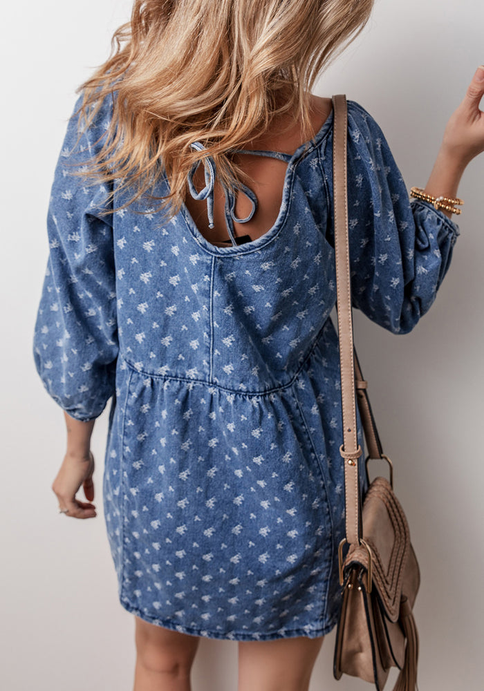 Ashleigh Blue Textured Open Back Loose Fit Denim Dress