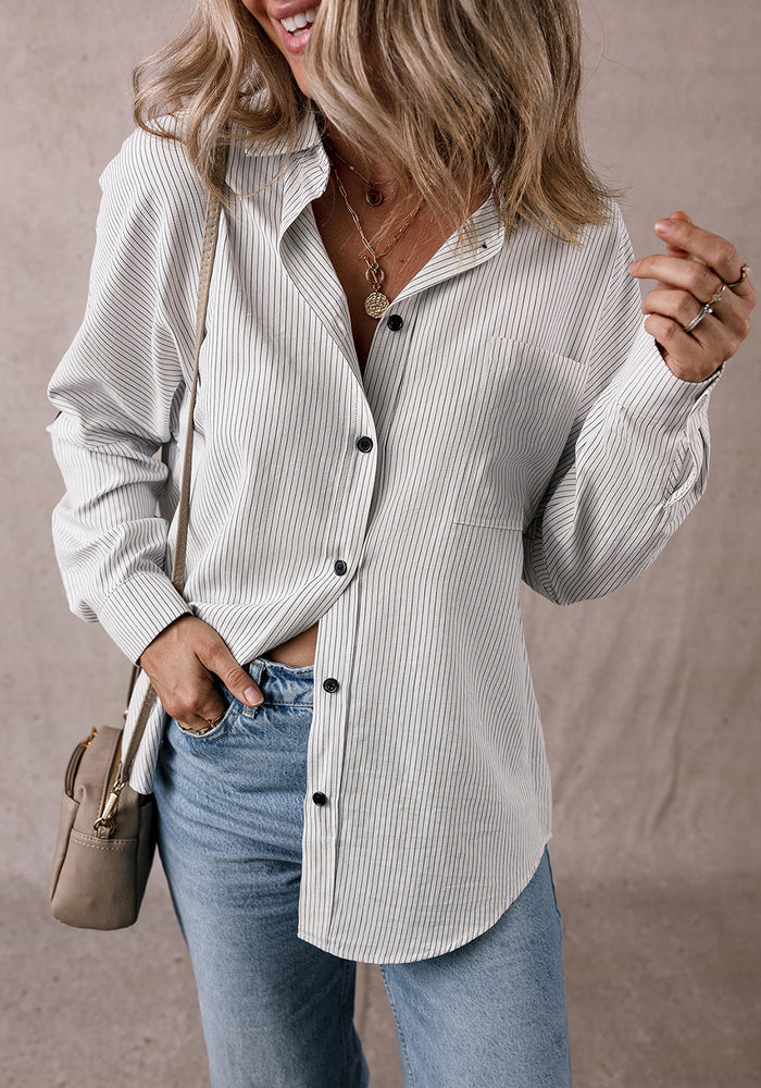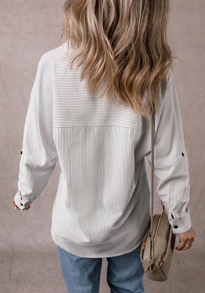 DEAR-LOVER Stripe Roll-tab Sleeve Pocketed Long Shirt