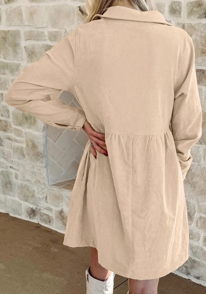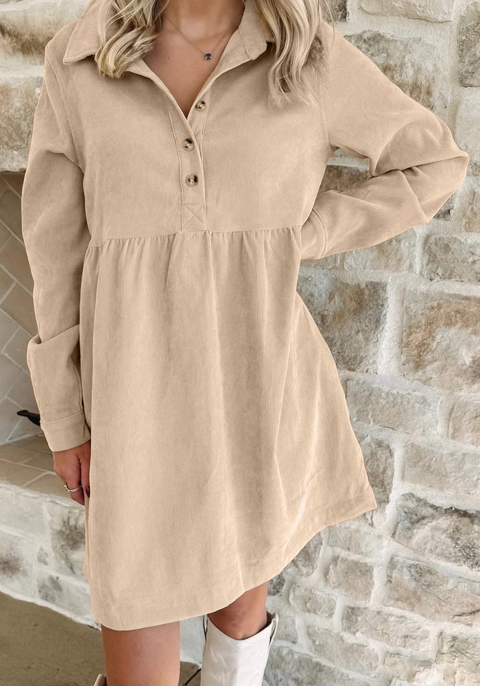 Dearlovers Oatmeal Corduroy Half Button Collared Long Sleeve Mini Dress