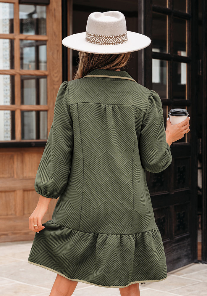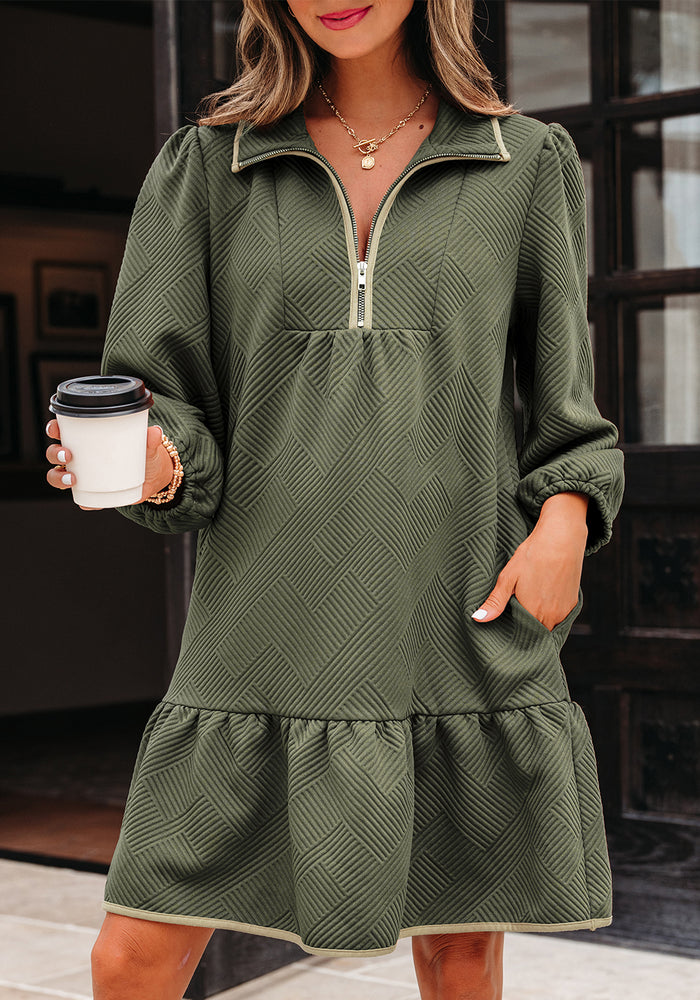 Dearlove Jungle Green Quarter Zip Collar Bracelet Sleeve Textured Mini Dress