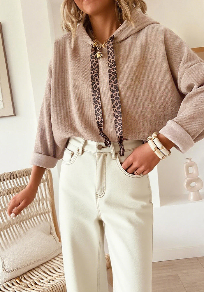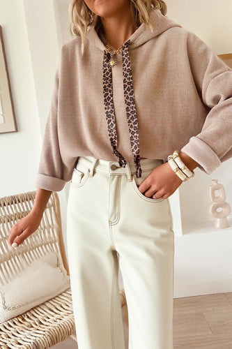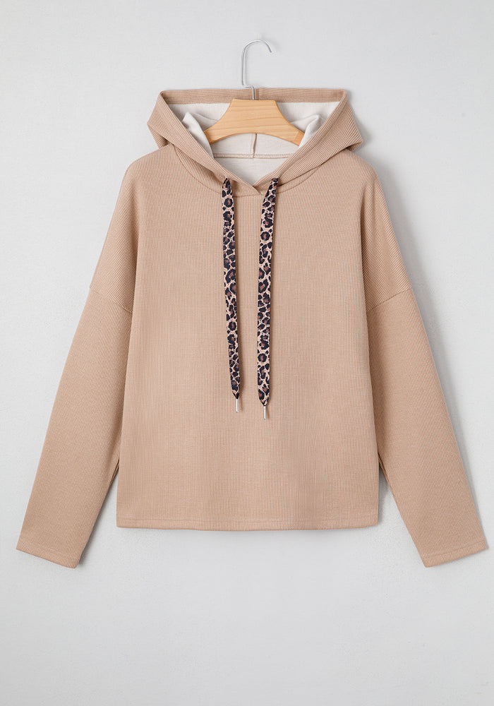 Dark Khaki Thermal Textured Leopard Drawstring Baggy Hoodie