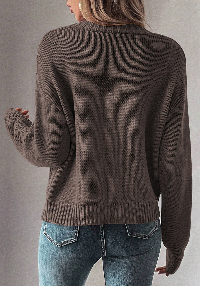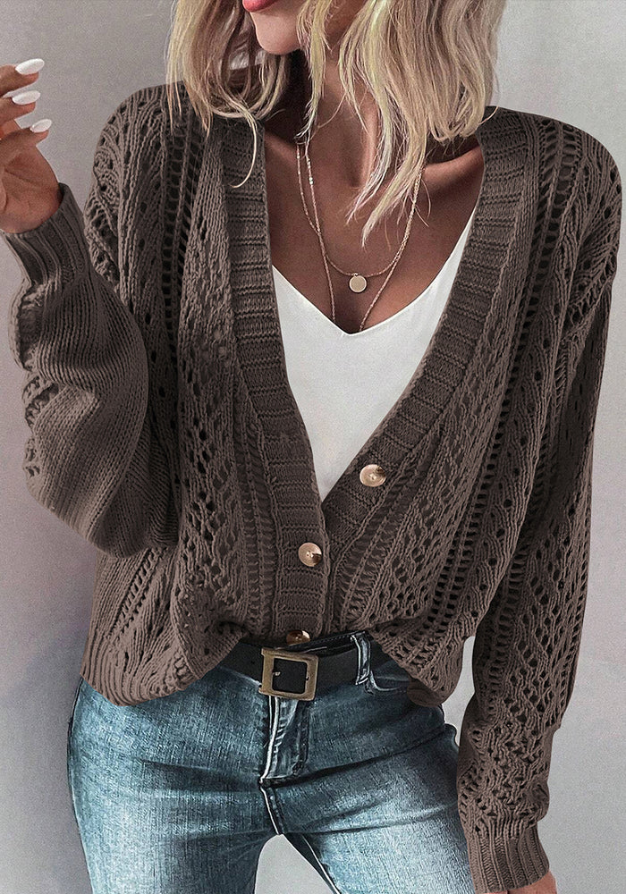 Dark Khaki Open Knit Drop Shoulder Sweater Cardigan