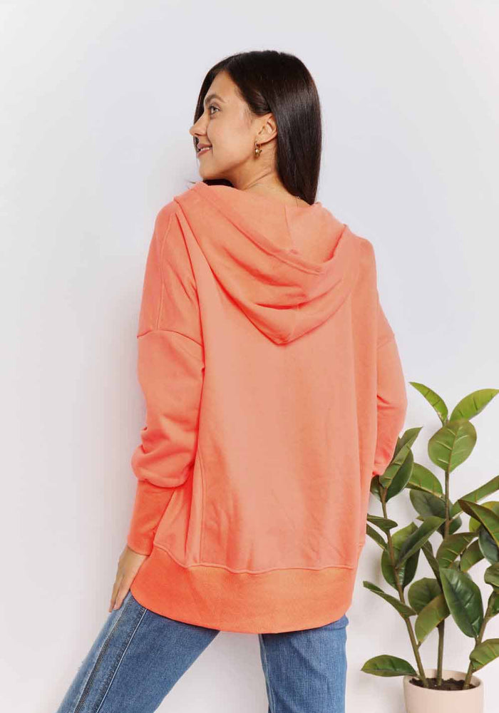 Double Take Quarter-Snap Dropped Shoulder Hoodie