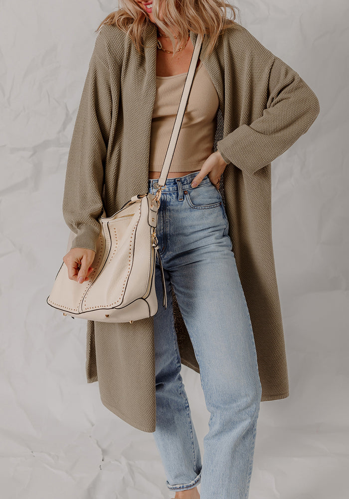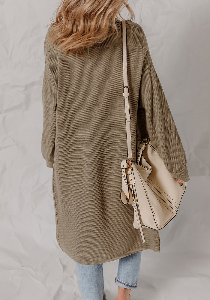 DUNE Solid Color Textured Knit Open Front Oversize Midi Sweater Cardigan
