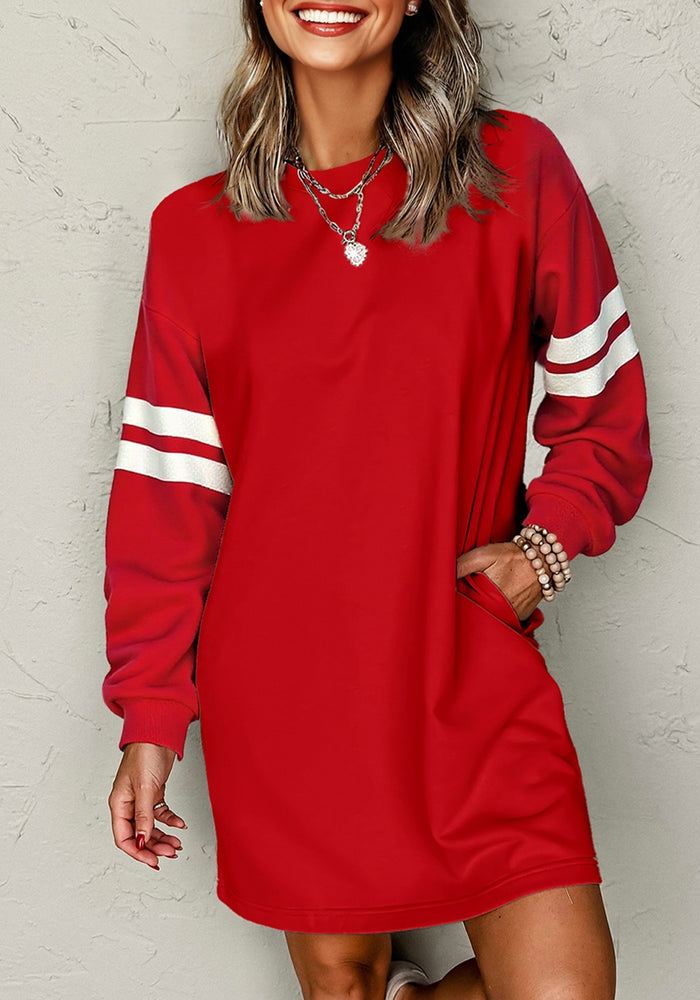 Fiery Red Varsity Contrast Banded Sleeve Shift Sweatshirt Dress