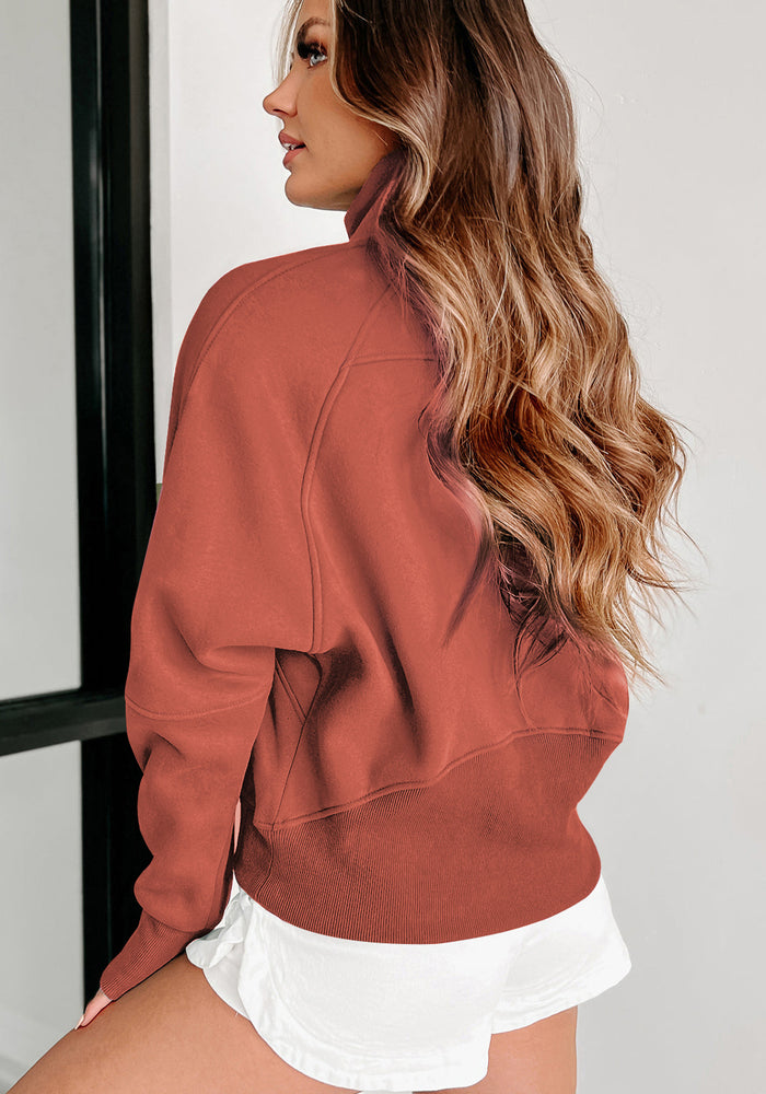Flamingo Fleece Lined Zip Up Stand Collar Thumbhole Sleeve Sweatshirt