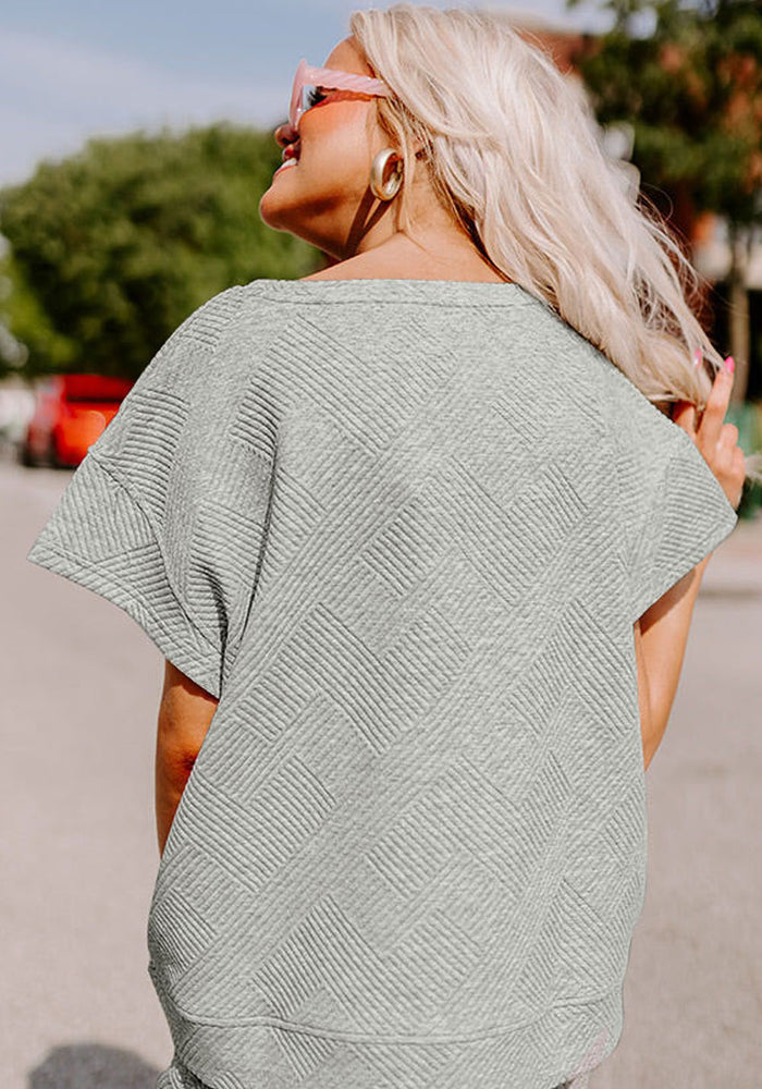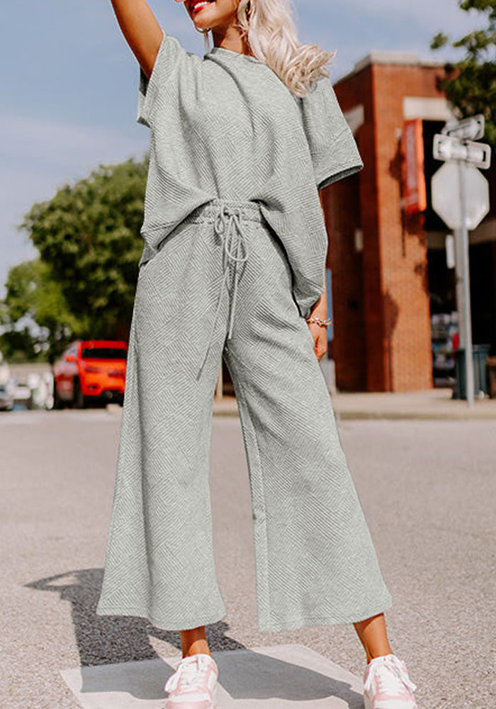 Gray Textured Loose Fit T Shirt and Drawstring Pants Set
