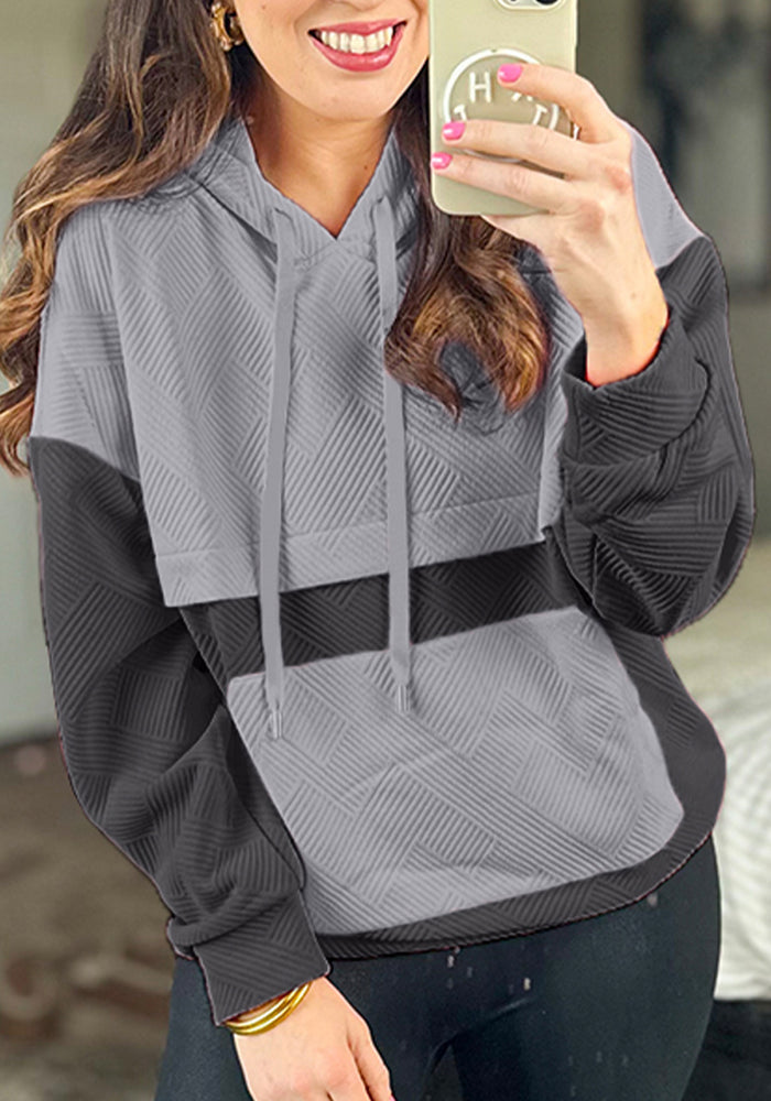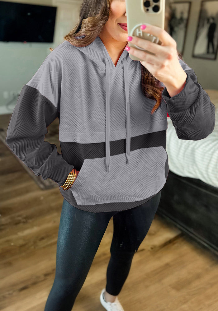 Gray Textured Color Block Kangaroo Pocket Drop Shoulder Hoodie