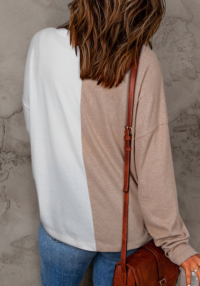 Khaki Colorblock Long Sleeve Crew Neck Top