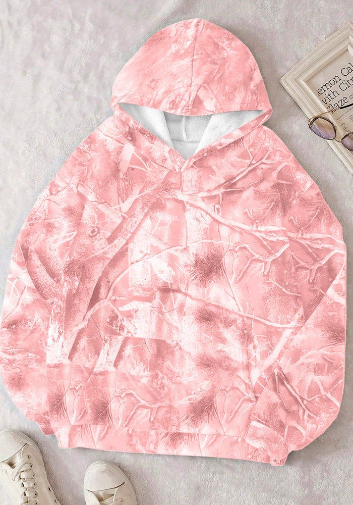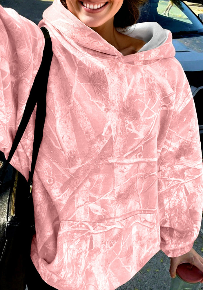 Light Pink Camouflage Woodland Print Oversized Sporty Hoodie