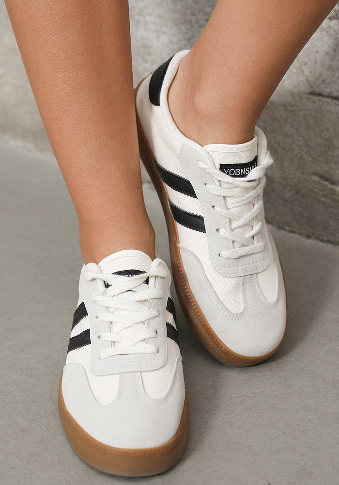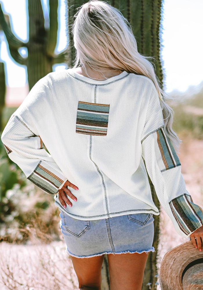 White Striped Patchwork Exposed Seam Waffle Knit Top