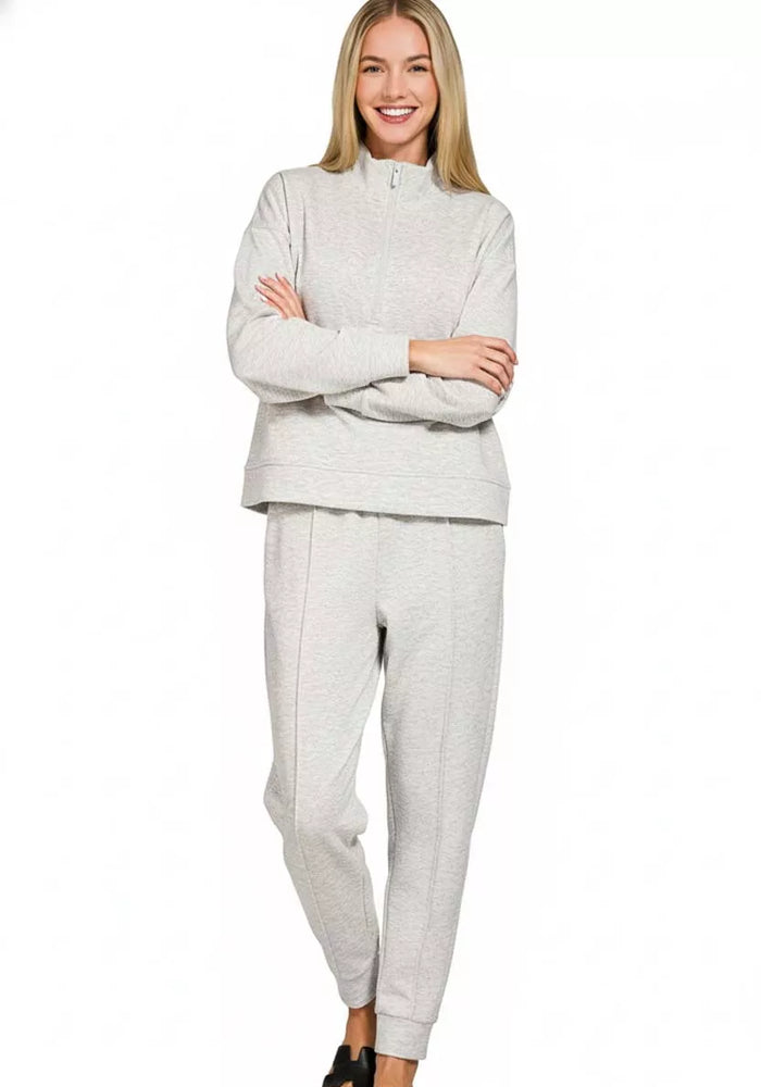 Zenana Scuba Half Zip Pullover and Jogger Set