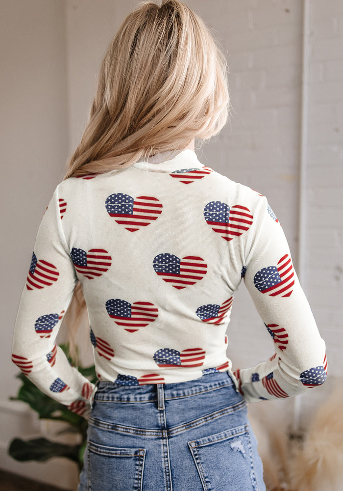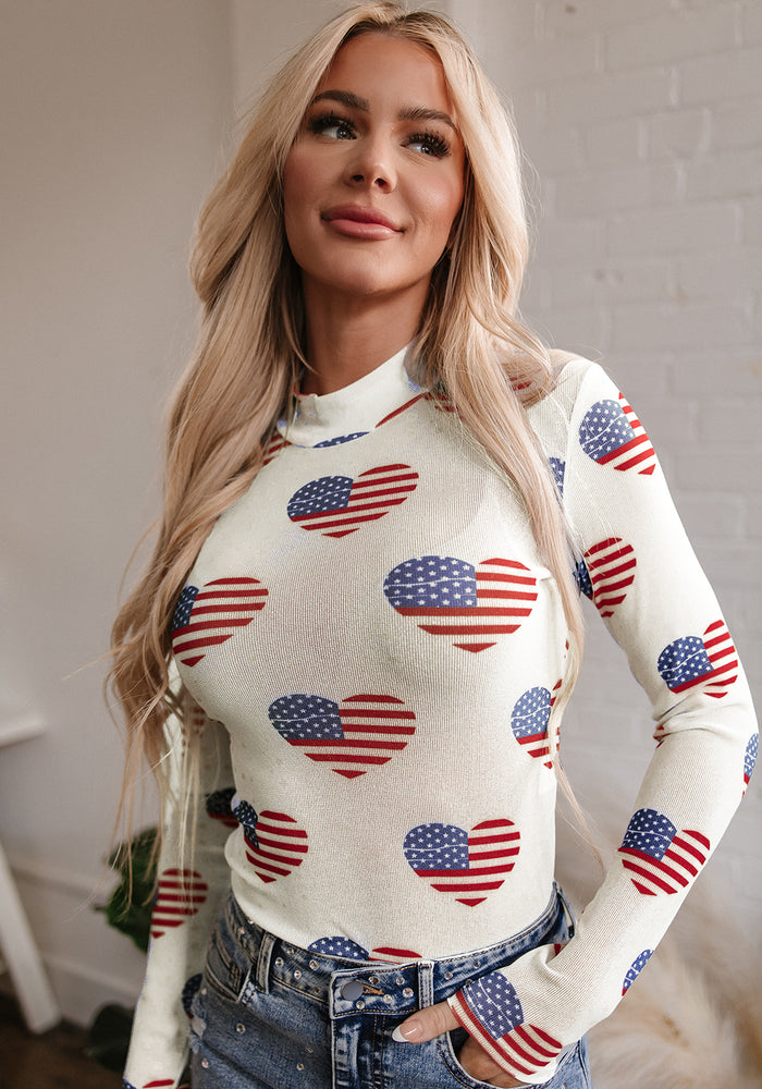 White Americana Glitter Mesh Long Sleeve Bodysuit