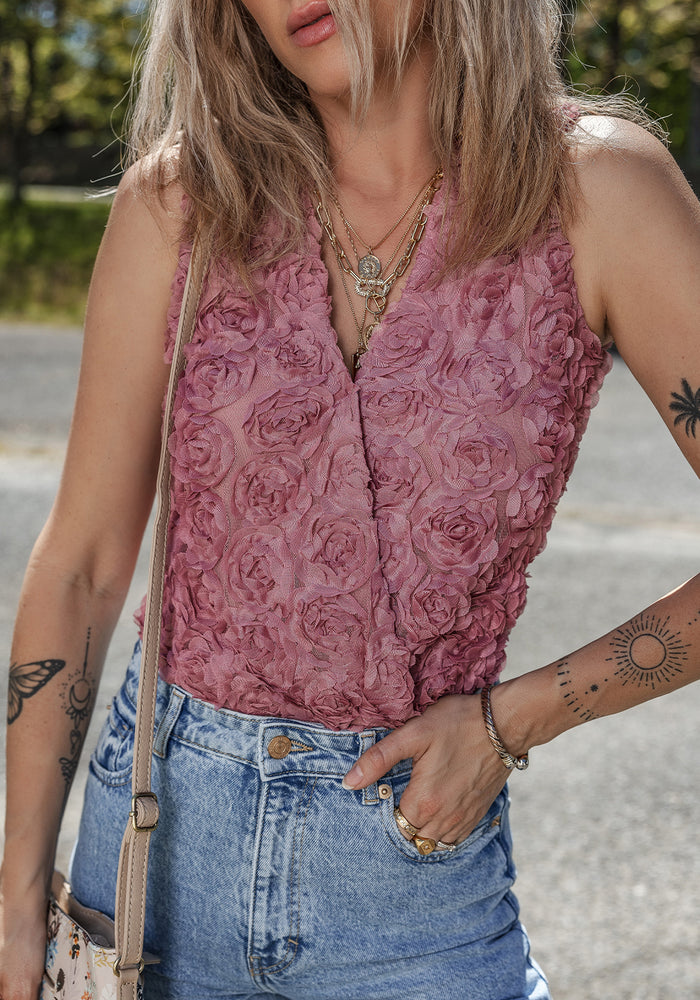 Heather Floral Textured V Neck Wrapped Sleeveless Bodysuit