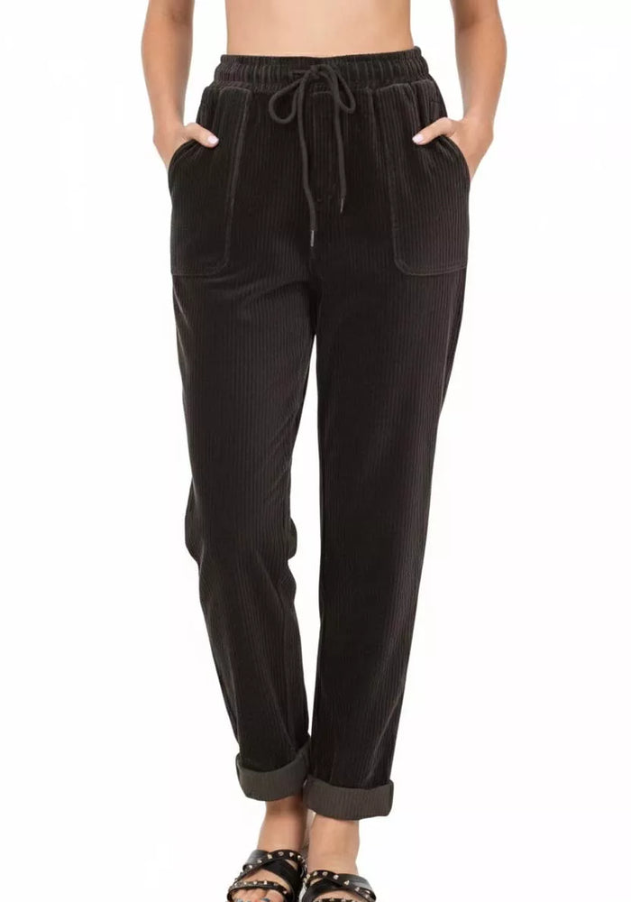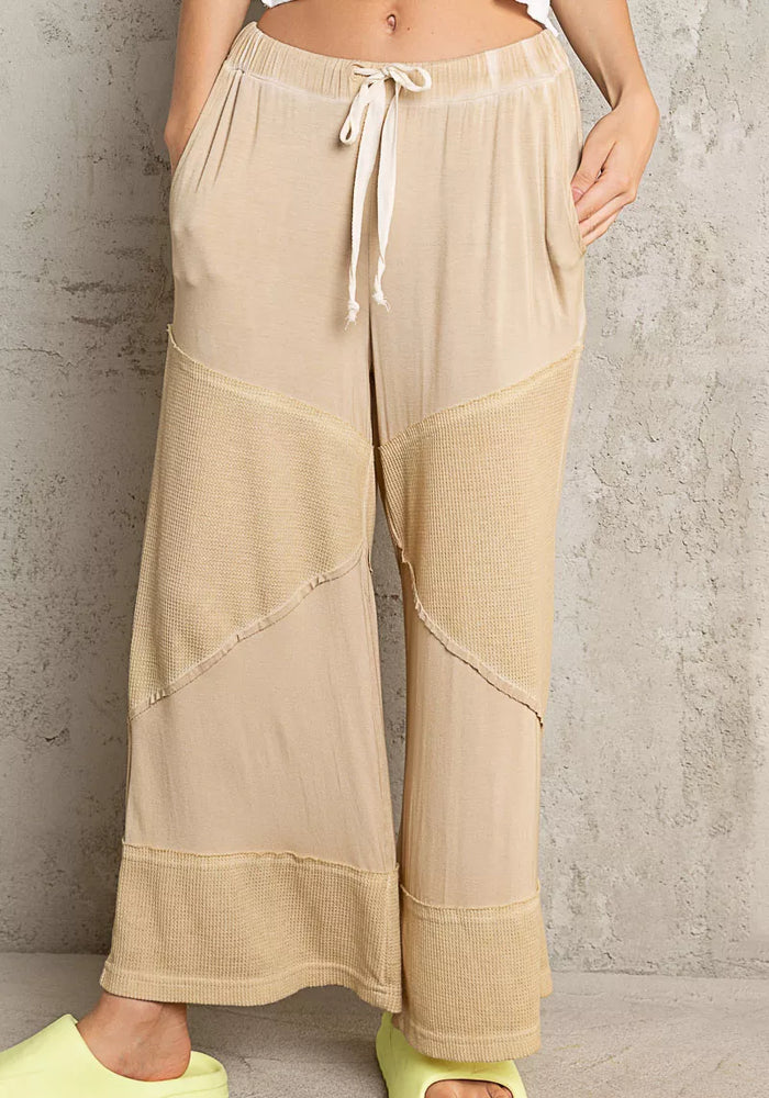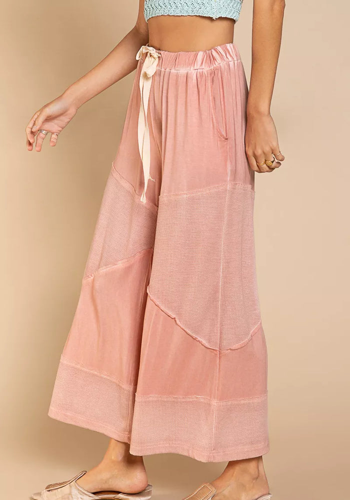 POL Elastic Waistband Wide Leg Pants with Drawstring