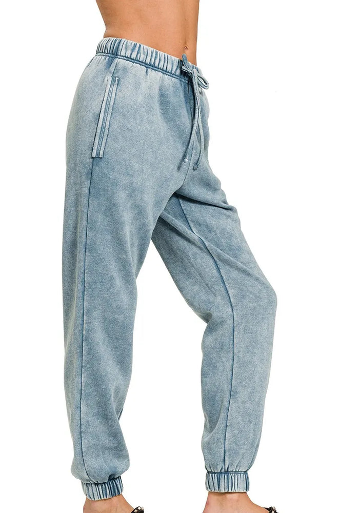 Zenana Acid Wash Fleece Sweatpants with Pockets