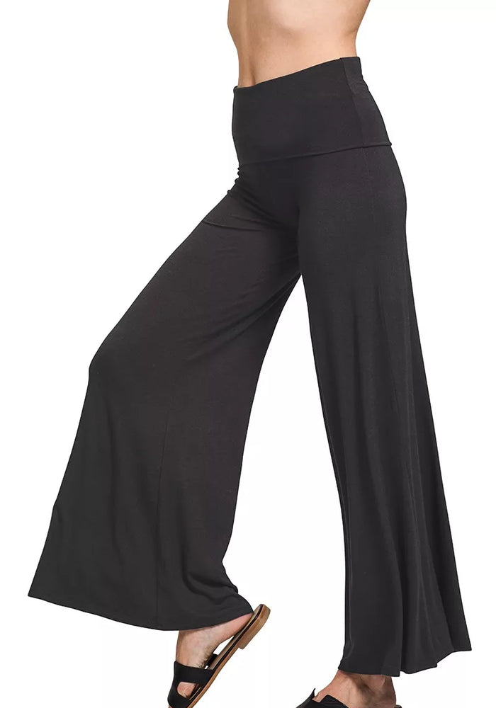 Zenana Full Size Fold Over Waist Comfy Wide Leg Pants Plus Size