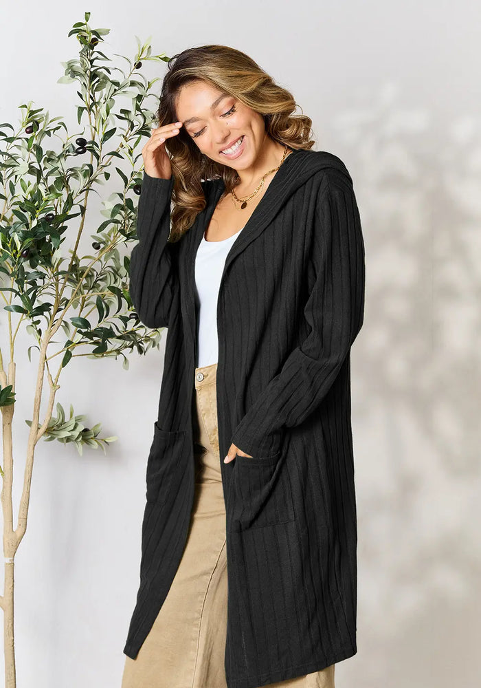 • Basic Bae Full Size Hooded Sweater Cardigan