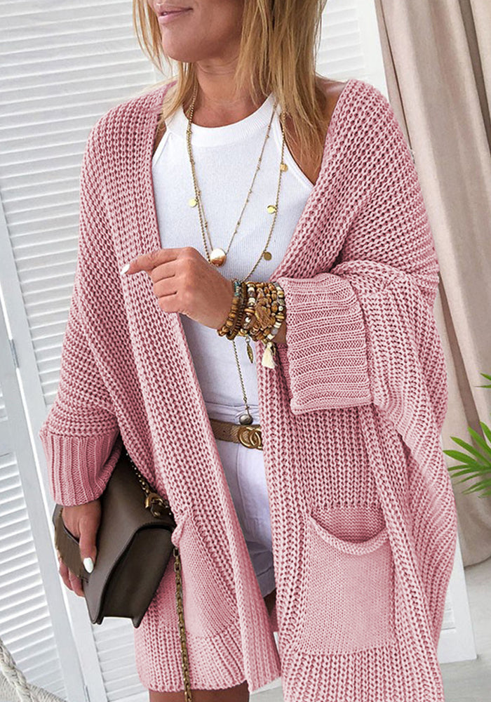 Pink Oversized Fold Over Sleeve Open Front Cardigan