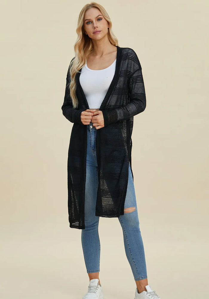 • BiBi Slit Open Front Longline Cardigan with Pockets