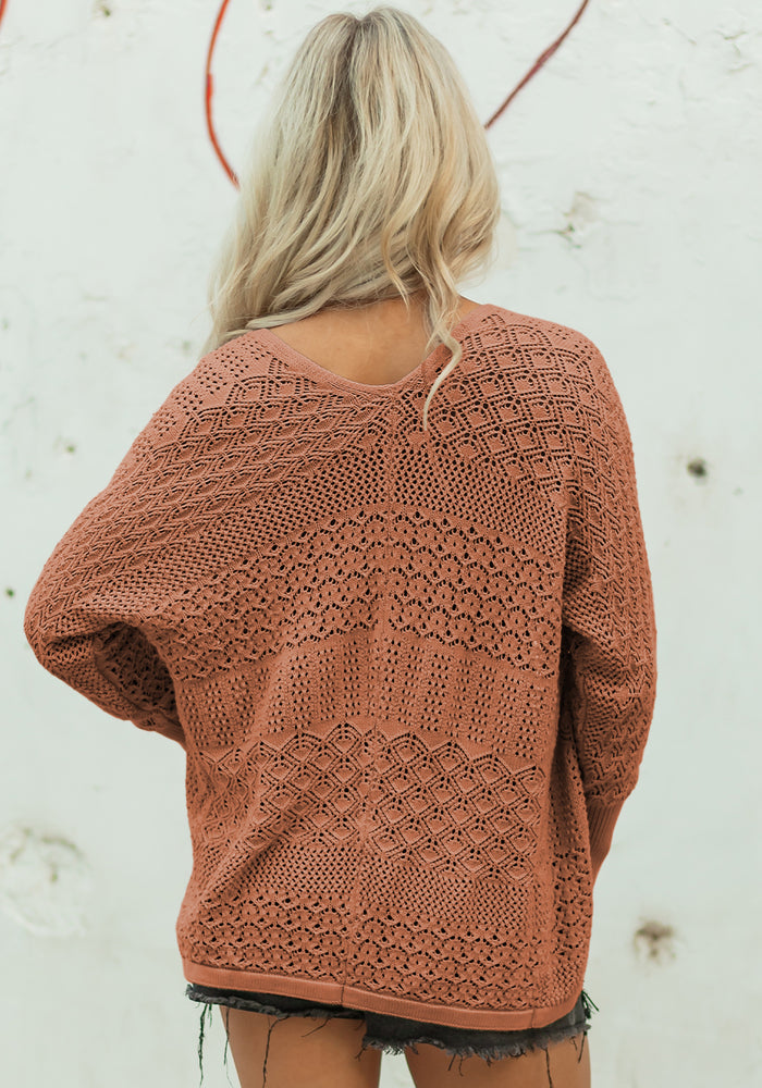 Redwood Burl Mix Pattern Hollowed Knit Open Front Cardigan