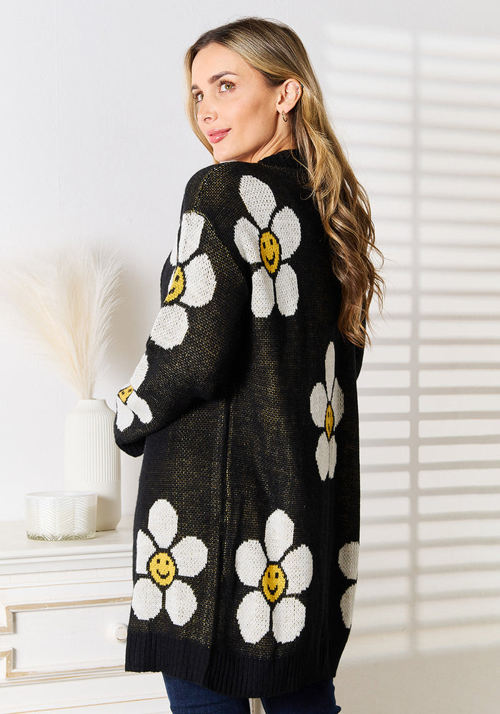 Perfee Floral Button Down Longline Cardigan