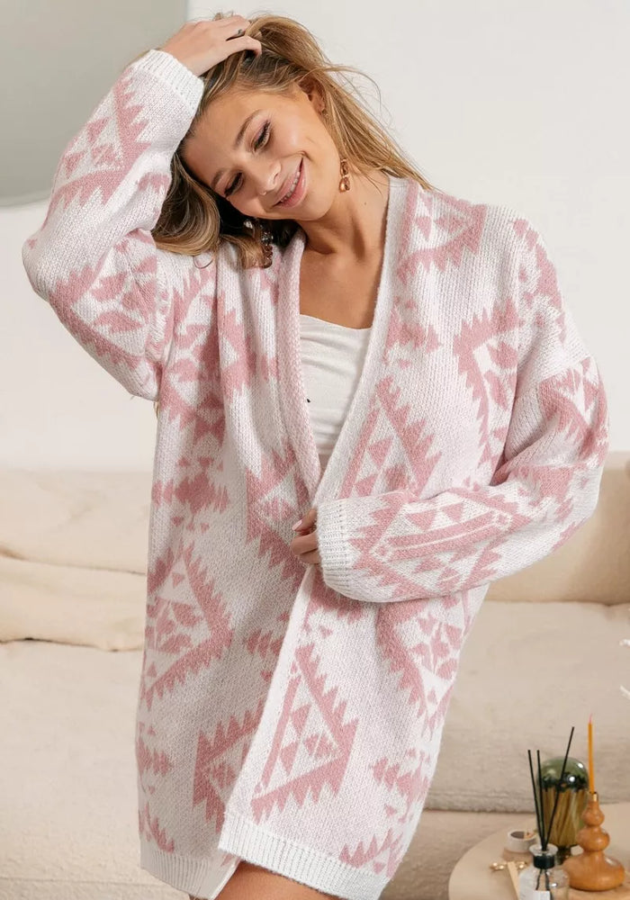 BiBi Aztec Pattern Open Front Cardigan