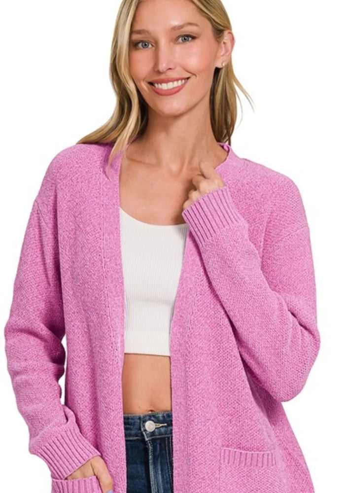 Zenana Slouchy Lightweight Open Front Pocket Cardigan