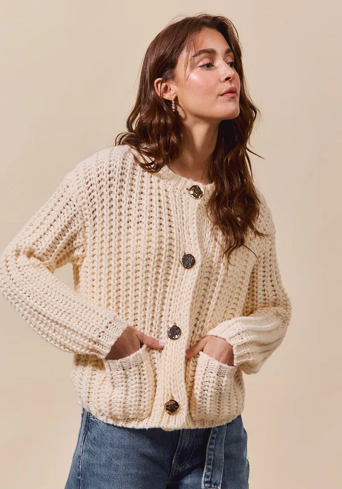 SO ME Metal Button Long Sleeve Chunky Sweater Cardigan