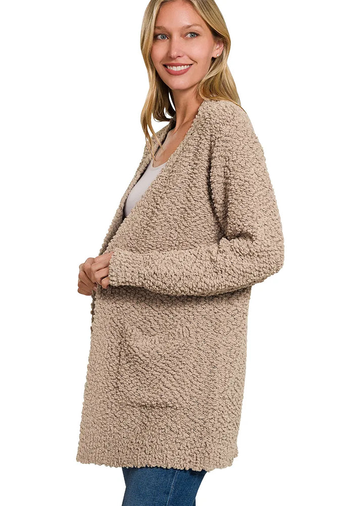 Zenana Long Sleeve Popcorn Sweater Cardigan with Pockets