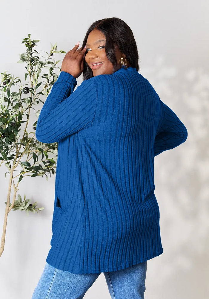 Basic Bae Full Size Ribbed Open Front Cardigan with Pockets