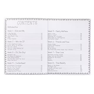 The content is divided into 12 weeks and each week features five devotions for a total of 60 devotions. Topics include God and Me, Who am I, Family Matters, Purity, Modesty, Mean Girls, and much more. The book is designed for preteen and teenage girls aged 13 and older ready to dig deeper into their relationship with God. It offers practical always to apply God's Word to real life, all while expressing your creativity. So get your fancy pens, colored pencils, crayons, and markers ready and do as the author, Nancy Taylor,s says, "Write all over this book!"