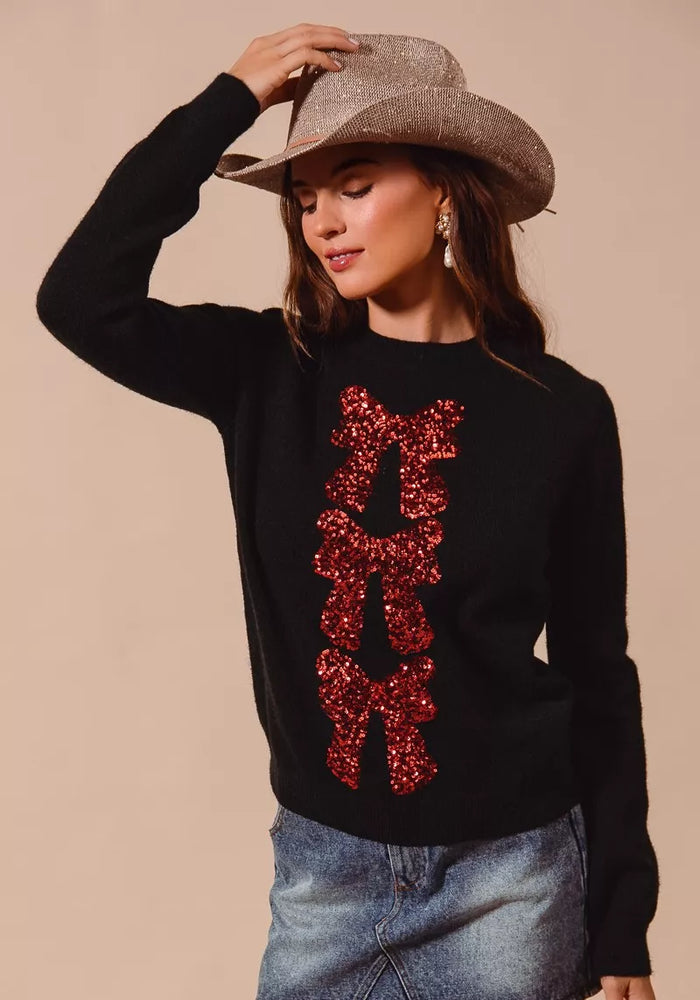 SO ME Sequins Bow Ribbon Embellished Christmas Sweater