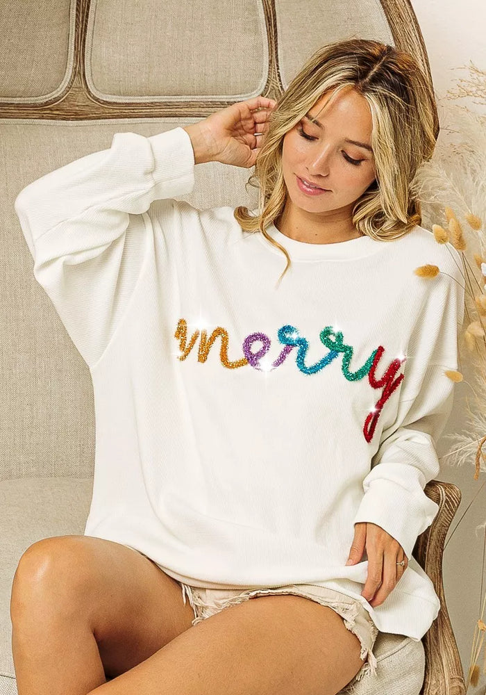 BiBi Merry Tinsel Lettering Drop Shoulder Sweatshirt