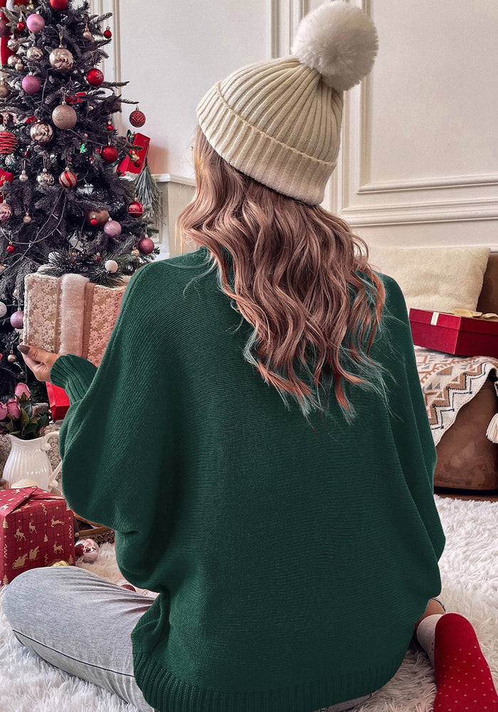 Blackish Green Merry Letter Embroidered High Neck Sweater