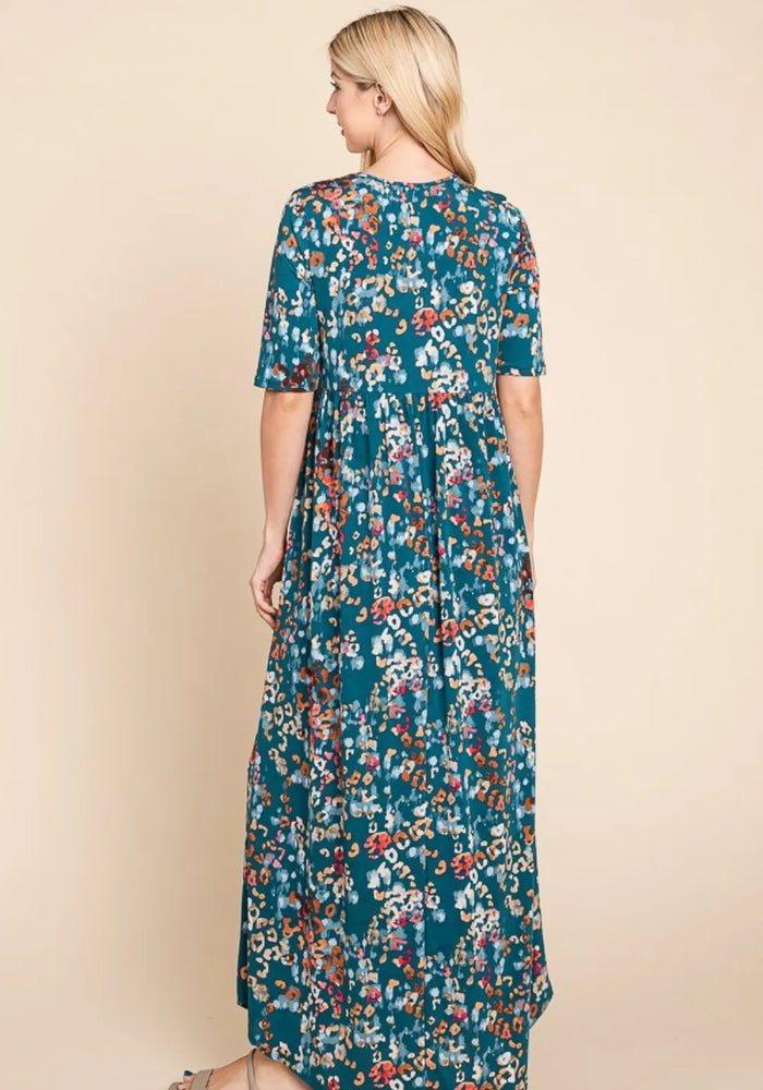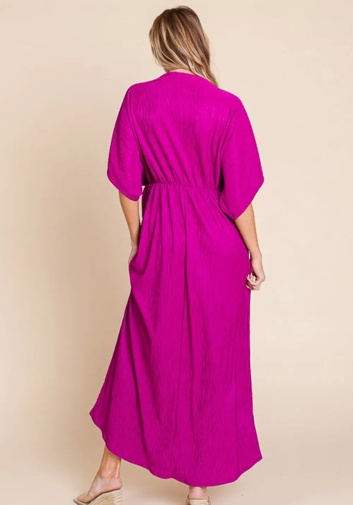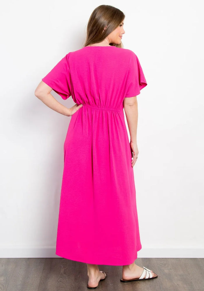 Be Stage Full Size Shirred Front Short Sleeve Maxi Dress
