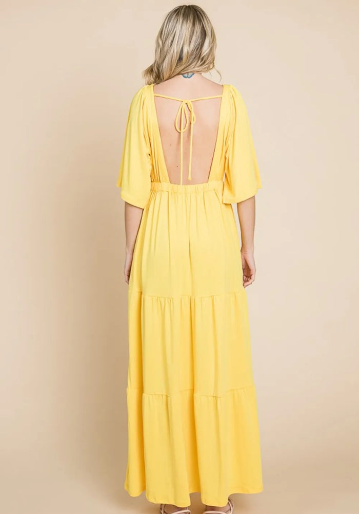 Culture Code Backless Plunge Half Sleeve Tiered Dress