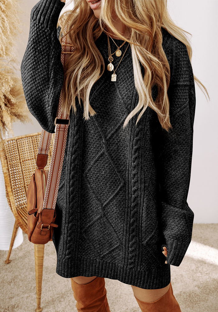 Black Cable Knit Drop Shoulder Loose Fit Sweater Dress