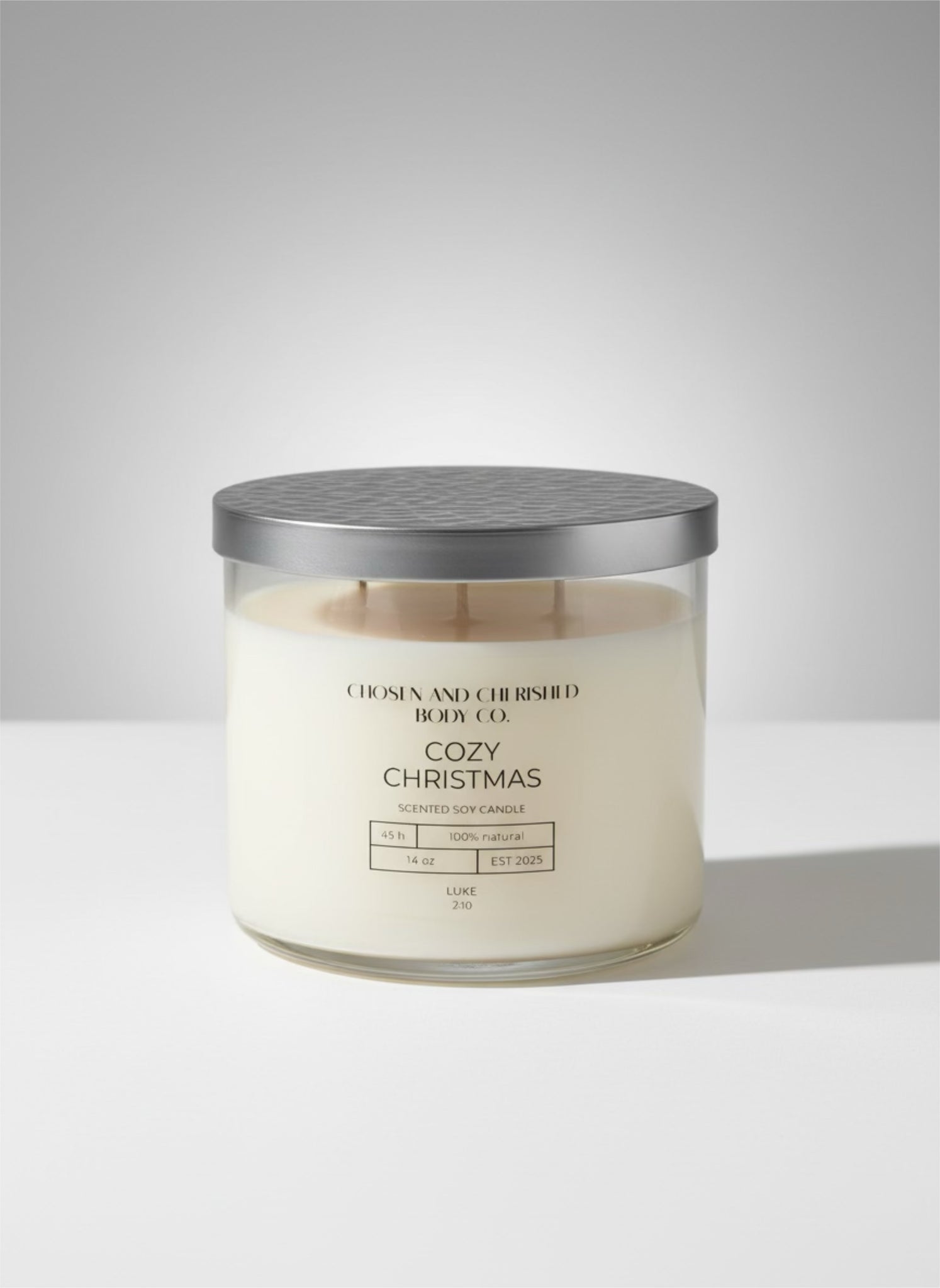 + Cozy Christmas Candle - Cozy evergreen forests of pine, firs, spruce & cedars make up the landscape of this rich, robust and spirited scent.