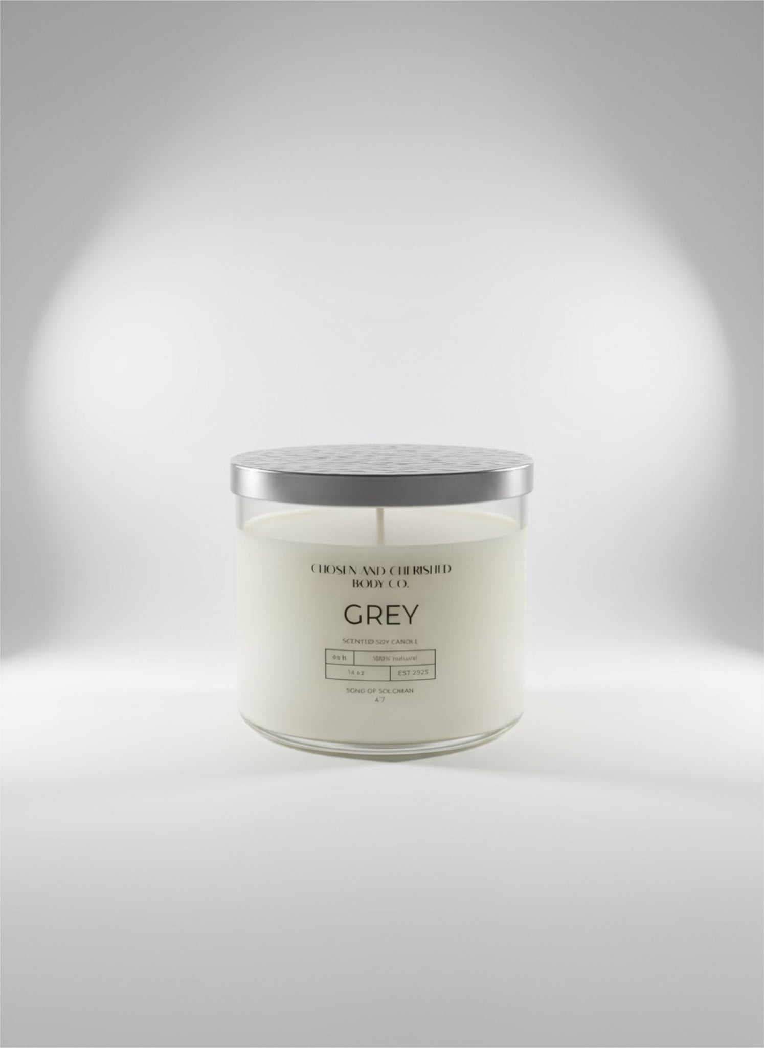 + Grey Candle - Sophisticated to the max, Grey brings together a confident blend of citrus, florals, exotic woods and musk. Undertones of vanilla and Tonka bean provide an elegant base.