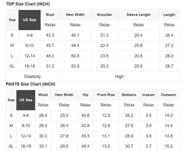 See size chart for approximate measurements.