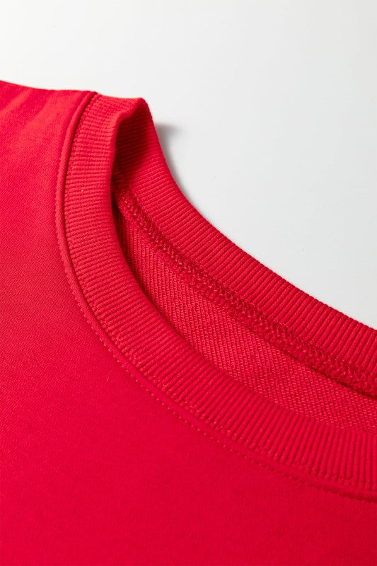 Elevate your casual wardrobe with this striking sweatshirt, featuring an eye-catching patch that brings feminine sophistication to everyday wear. The intentionally exposed seam detailing and bracelet sleeves create visual interest, while strategic slits add contemporary edge. Designed with a generous, relaxed silhouette that flatters multiple body types, this pullover delivers effortless style without compromise. The loose fit and accessible pullover construction make it an ideal grab-and-go piece for busy days when you need polished comfort instantly. Polyester/Cotton